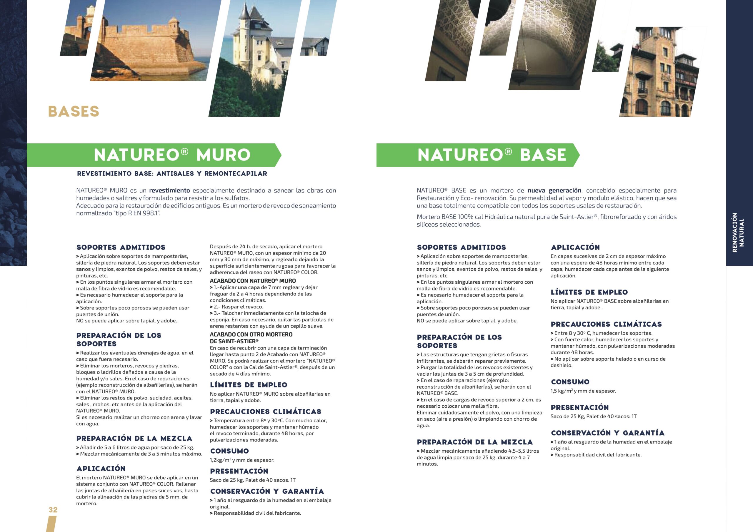 NATUREO® MURO es un revestimiento especialmente destinado a sanear las obras con humedades o salitres y formulado para resistir a los sulfatos