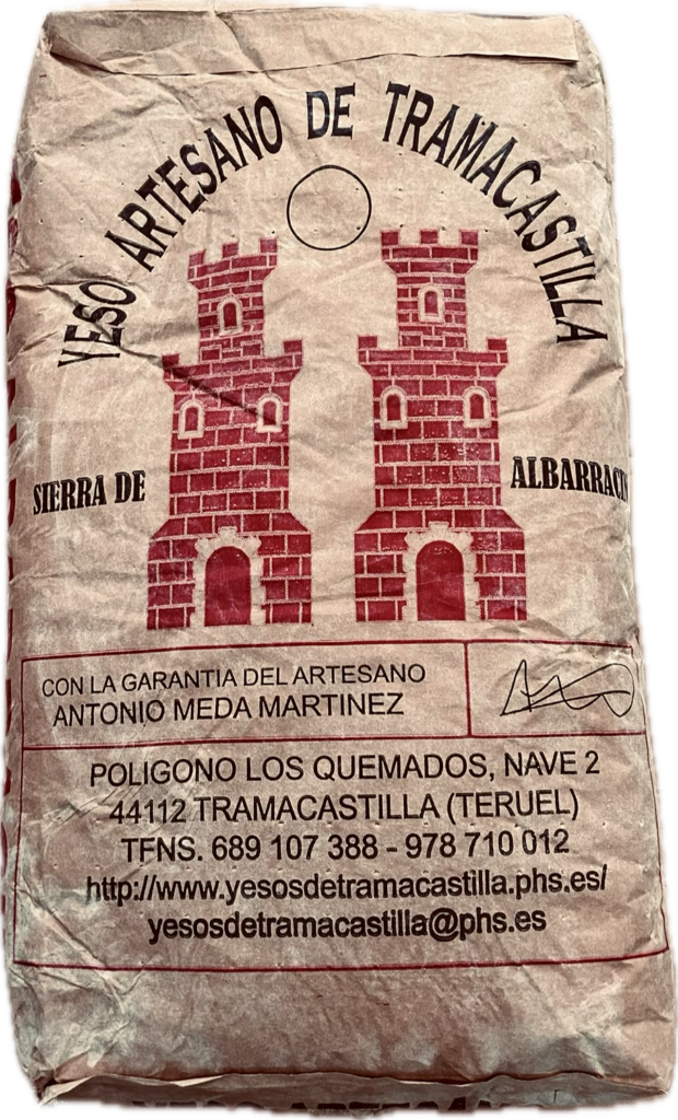 El YESO de ALBARRACIN es un yeso natural artesanal fabricado por el maestro artesano Antonio Meda, procedente de la comarca de Albarracín (Teruel). Fabricado en hornos tradicionales de bóveda, presenta un tono rojizo característico debido a su contenido en óxidos de hierro en el tipo Rojo y ocre en el Blanco.