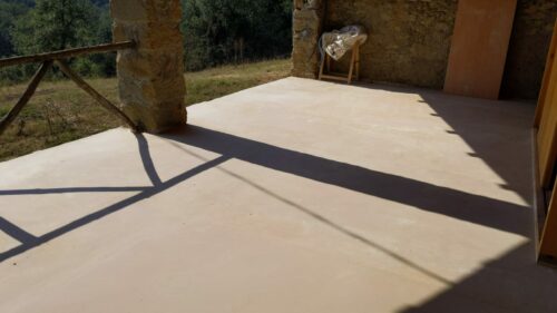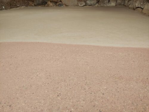 La dureza del yeso de Albarracín, especialmente el rojo, lo hace adecuado para la creación de pavimentos continuos, incluso para suelos con calefacción radiante.
